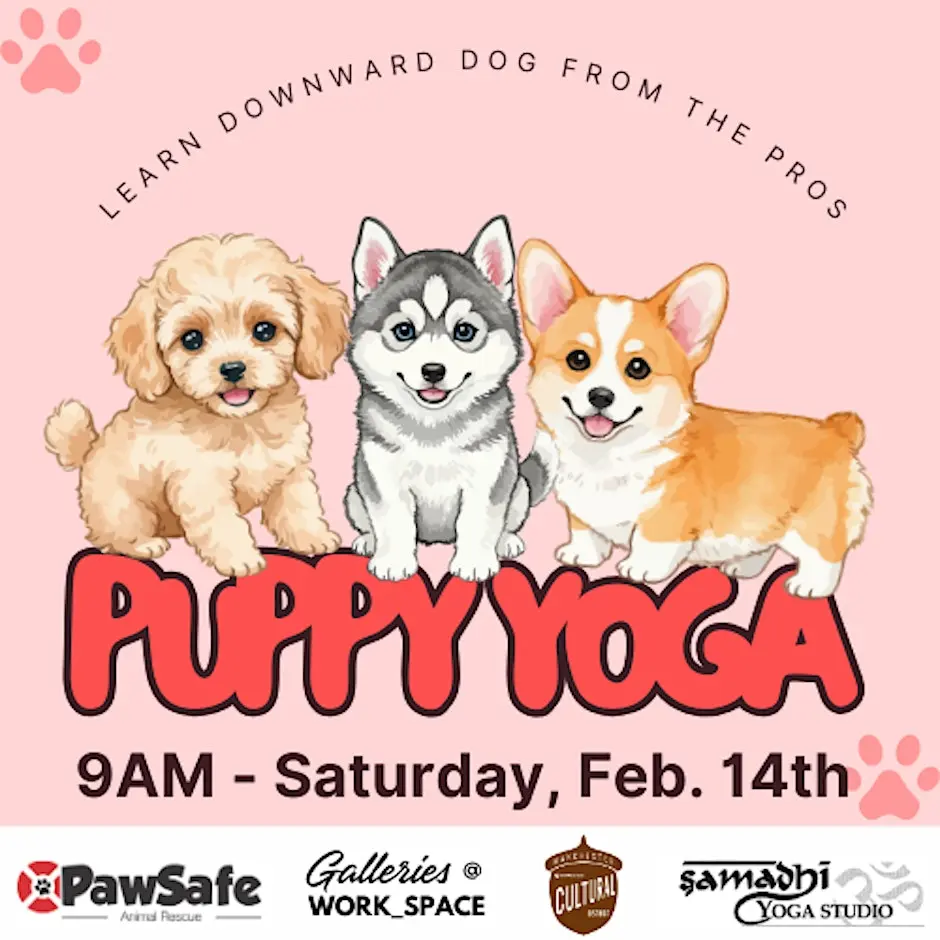 Work_Space 903 Main Street, Manchester, CT, United StatesCT Off-site eventWhat can be better than Yoga with puppies? Well adopting one of course. Come meet some adorable puppies that are hoping to find homes after their yoga debut! MORE INFO